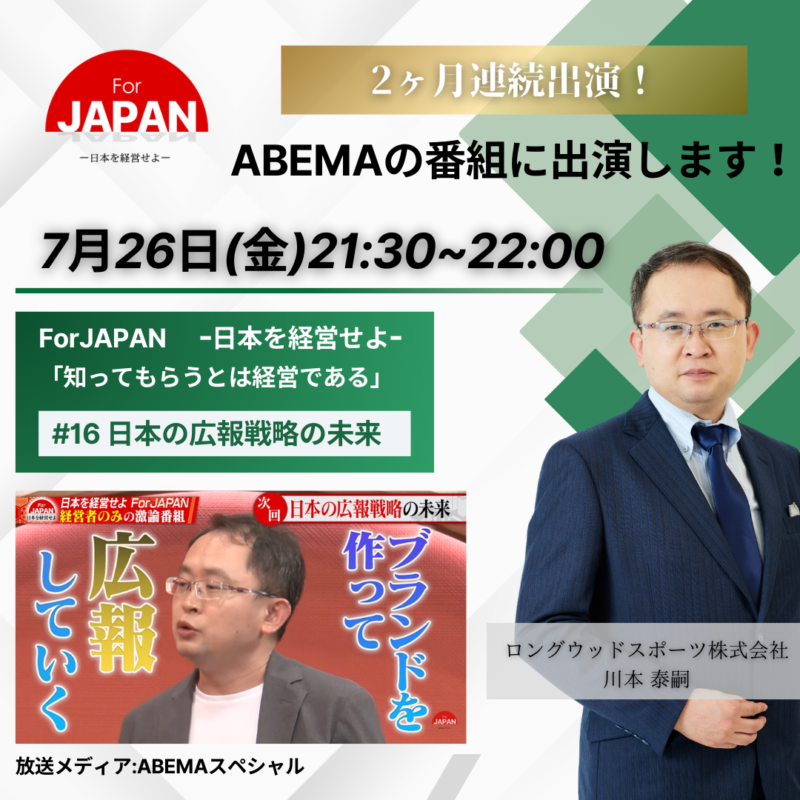 川本社長が出演するABEMAのスペシャル番組『FOR JAPAN』。