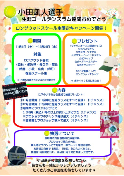 スクール在籍の方は小田凱人選手の抽選企画にも参加でき一石二鳥です!