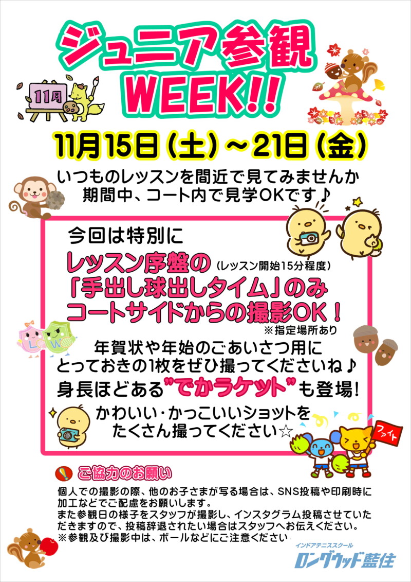 🎾ジュニア参観WEEK開催のお知らせ🎾