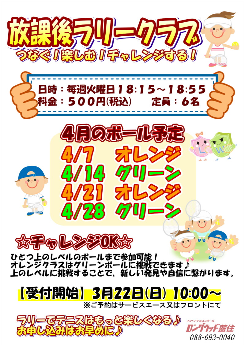 「つなぐ・楽しむ・チャレンジする」をテーマにした放課後ラリークラスです!