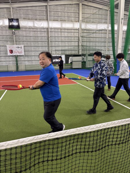 最後に三上コーチ、一柳コーチのお話、林ジェネラルマネージャー、社長の総括がありテニス研修は終了しました。