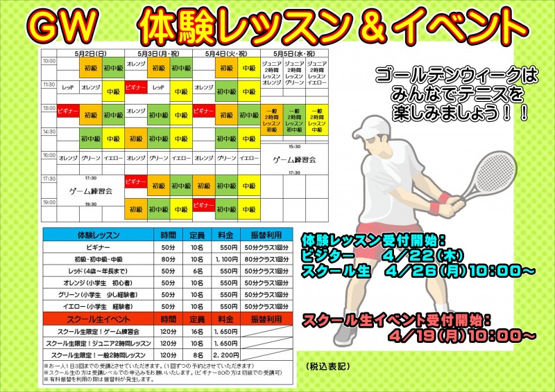 GWは普段のレッスンと違った内容でテニスを楽しみましょう!