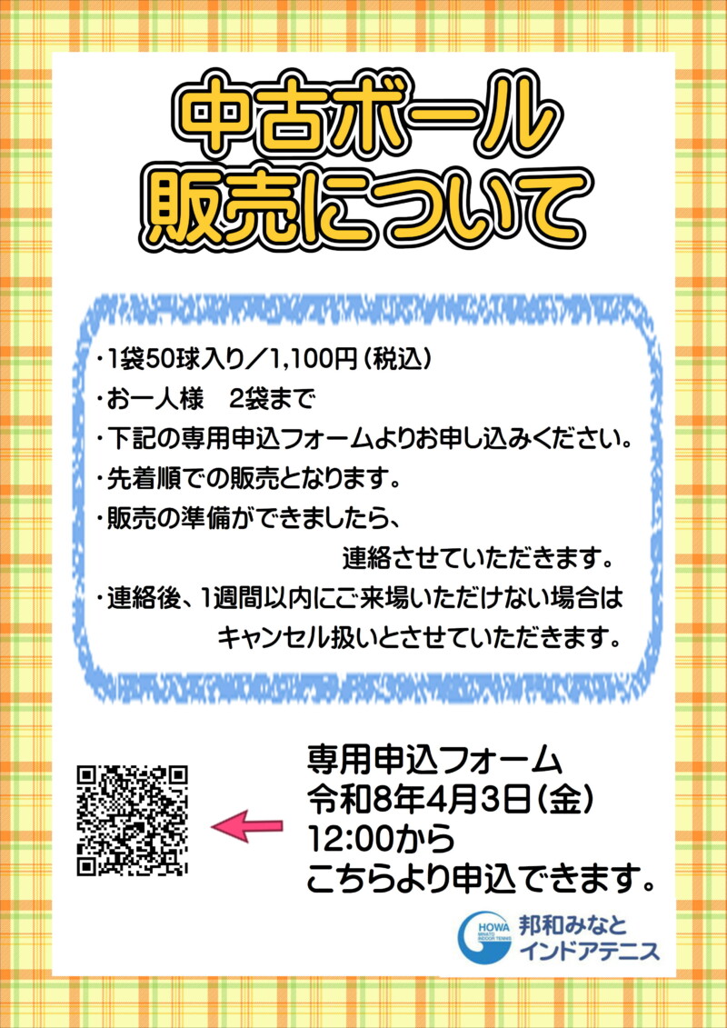 邦和みなとインドアテニスからのお知らせです。