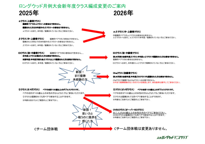 2026月例大会(クラス編成変更)のお知らせ