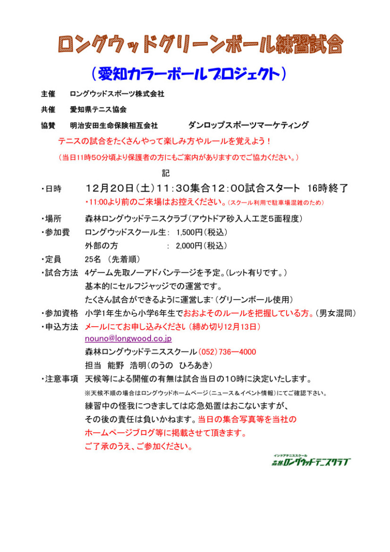 申し込みメールアドレス(担当:能野) nouno@longwood.co.jp