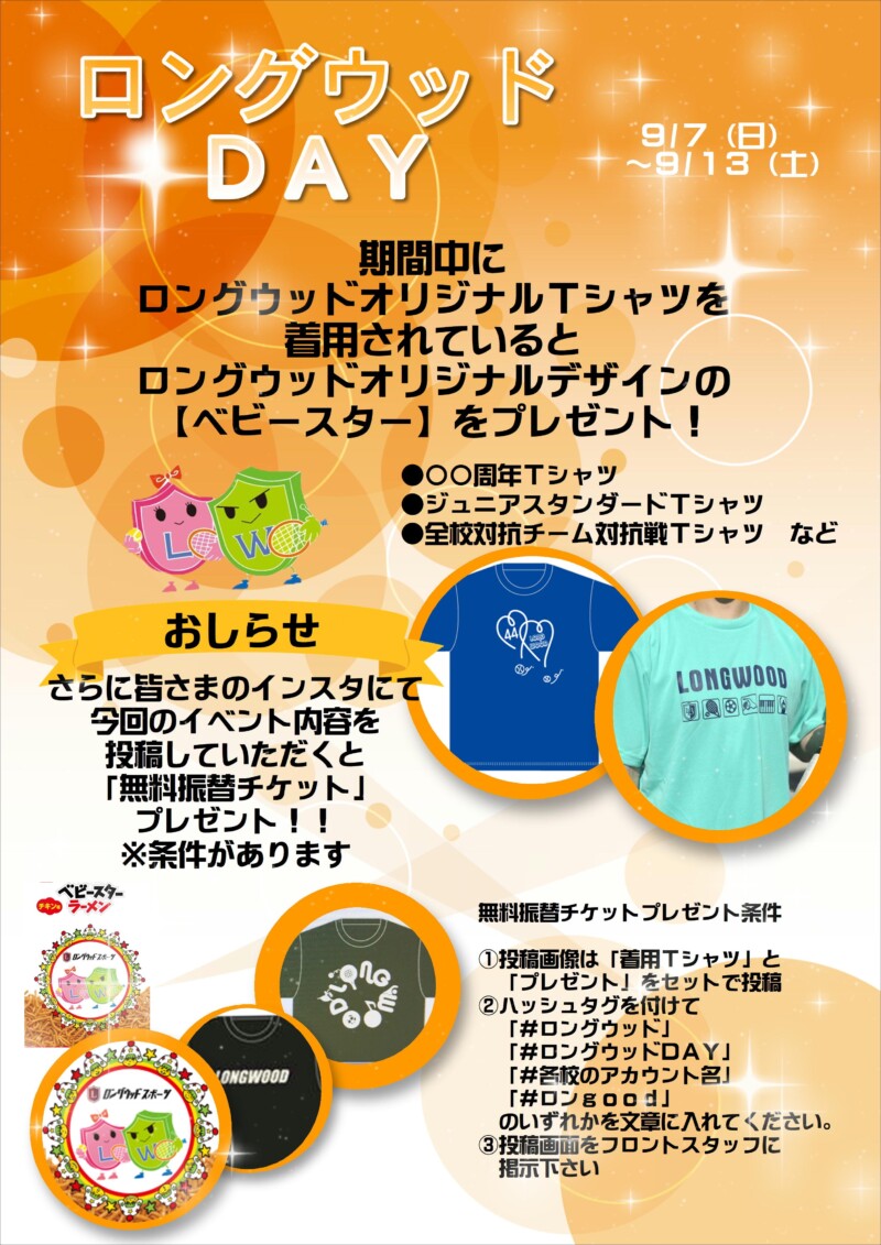 9月7日(日)から9月13日(土)まで『ロングウッドDAY』を開催します!