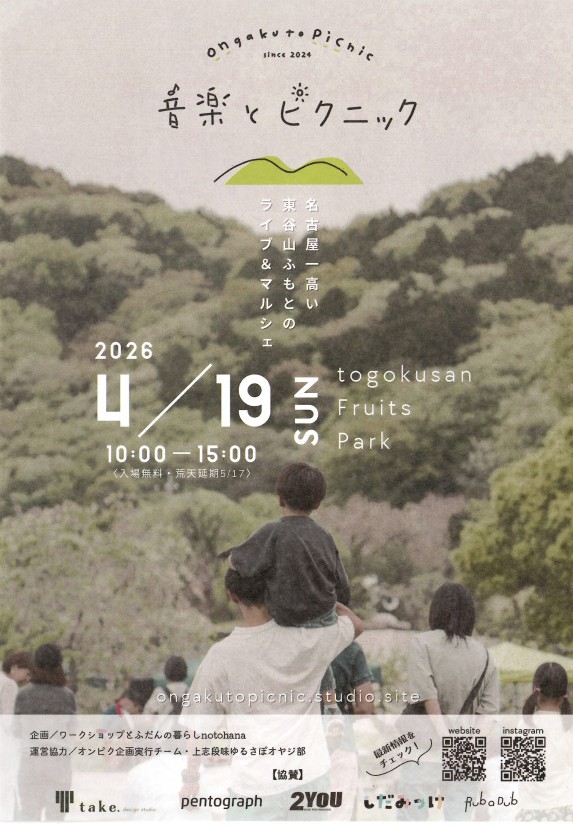『音楽とピクニック』 4月19日(日)東谷山フルーツパークにて開催されます!