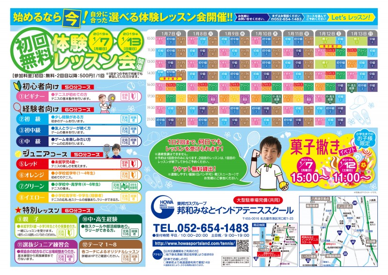 1月7日(月)~13日(日)の一週間、グランドオープンイベントとして体験レッスン会を開催します。