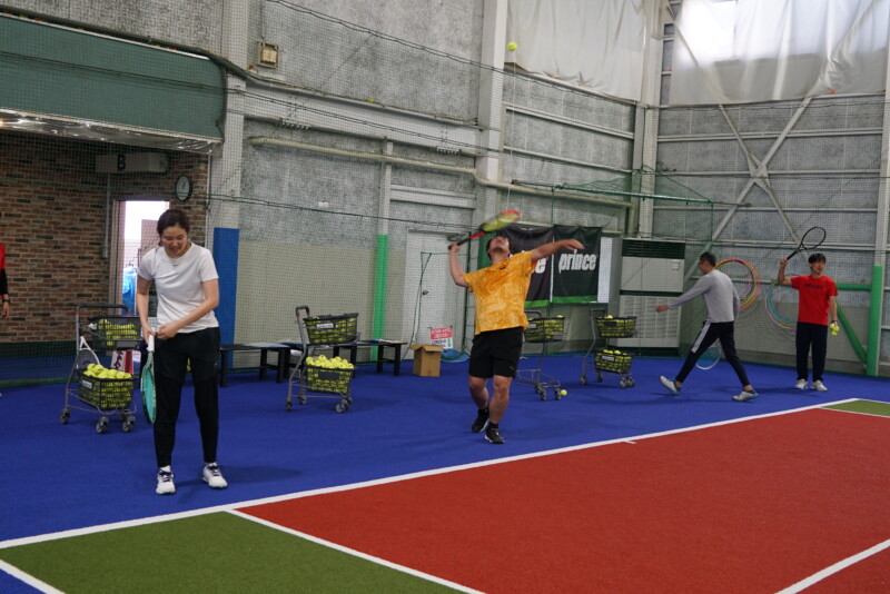 インドアコートでは「記念撮影」と「サーブ的当て」