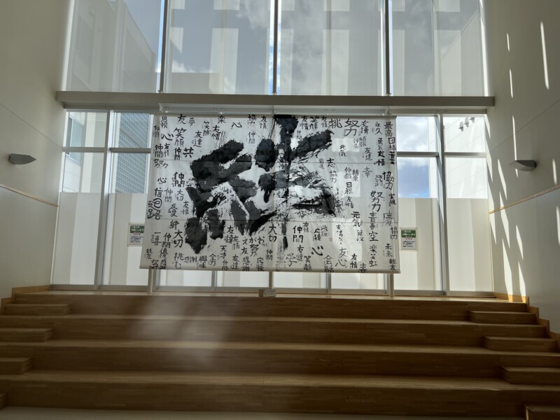 ・小学校の玄関ホールに飾られた「6年生の絆」