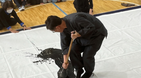 上志段味小学校にて書道パフォーマンスが行われました。
