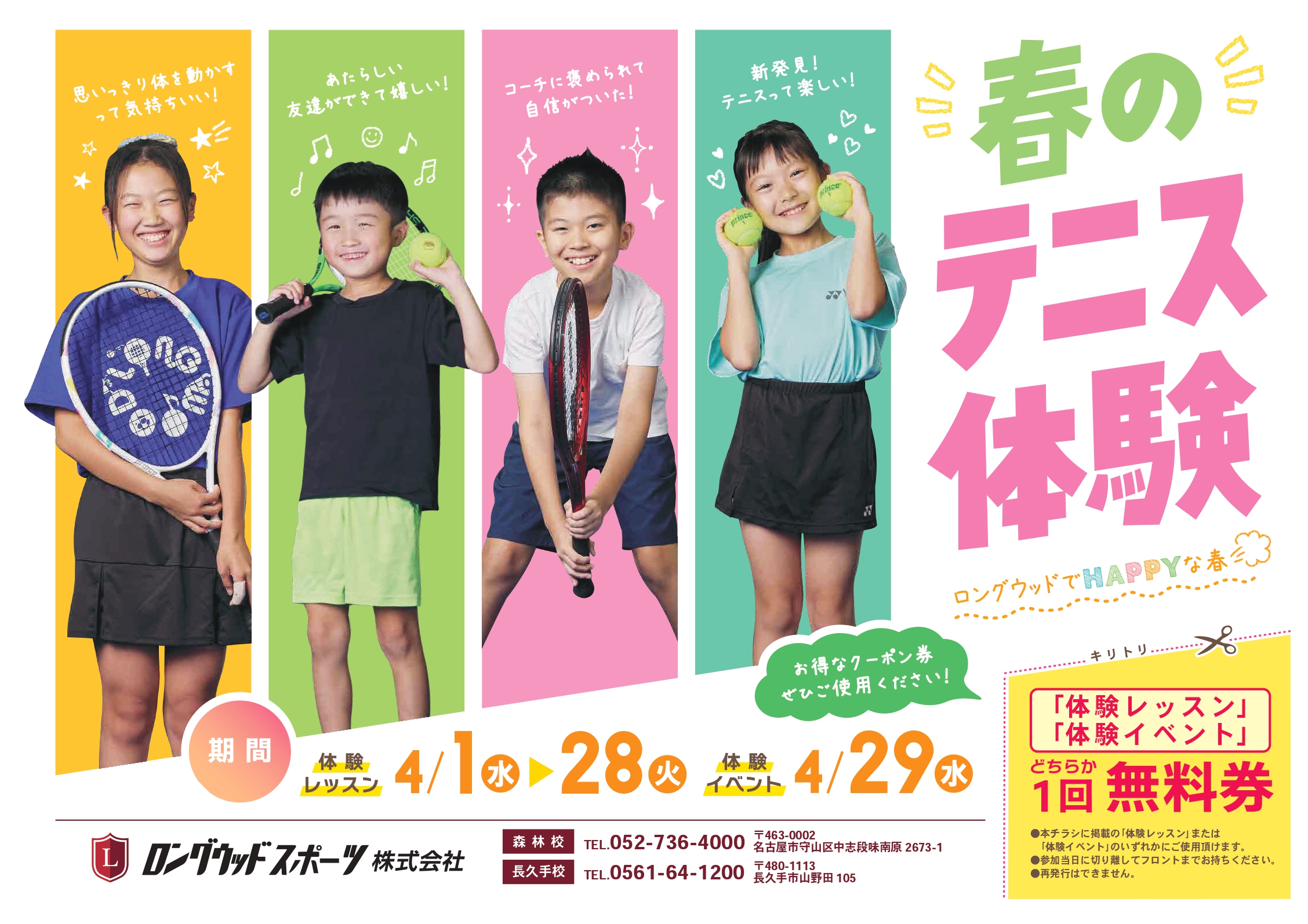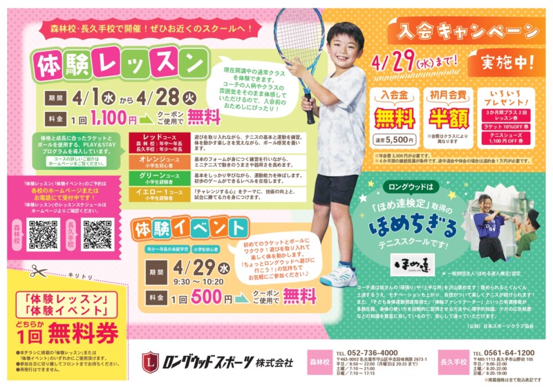 春のテニス体験・ワンコインおためし体験開催中!