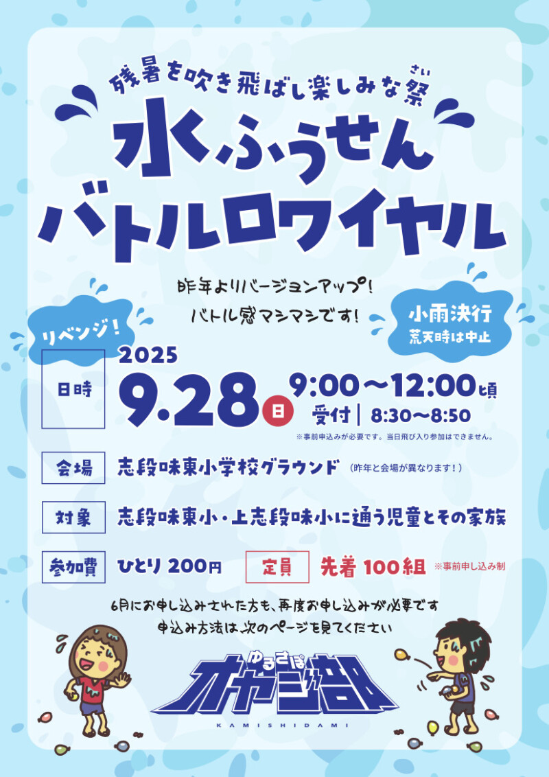 9月28日(日)にゆるさぽオヤジ部主催の「水ふうせんバトルロワイアル」が、志段味東小グランドにて開催されました。