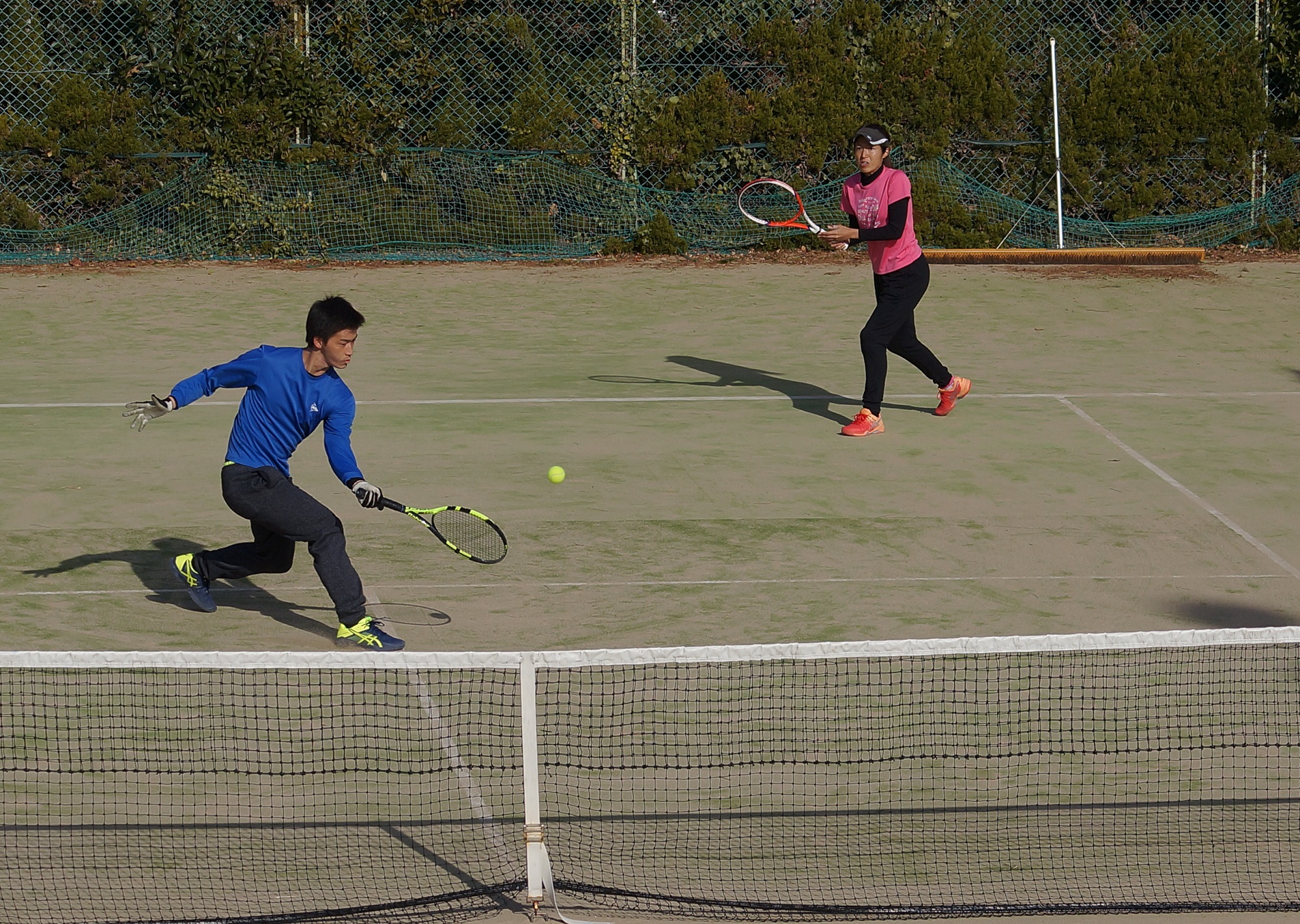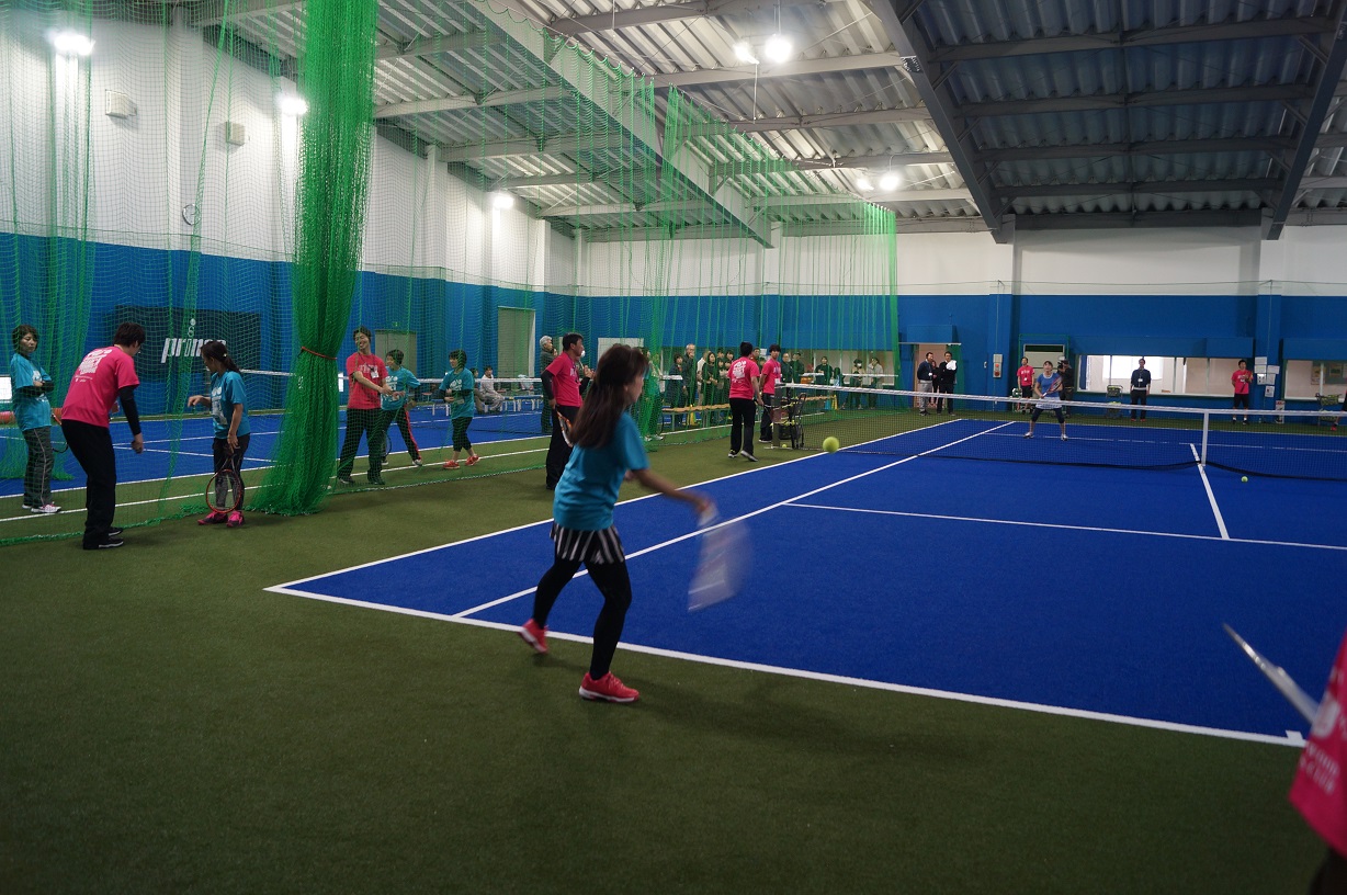 テニスの基本はフットワークです。2つのグループでダッシュの競争だ!