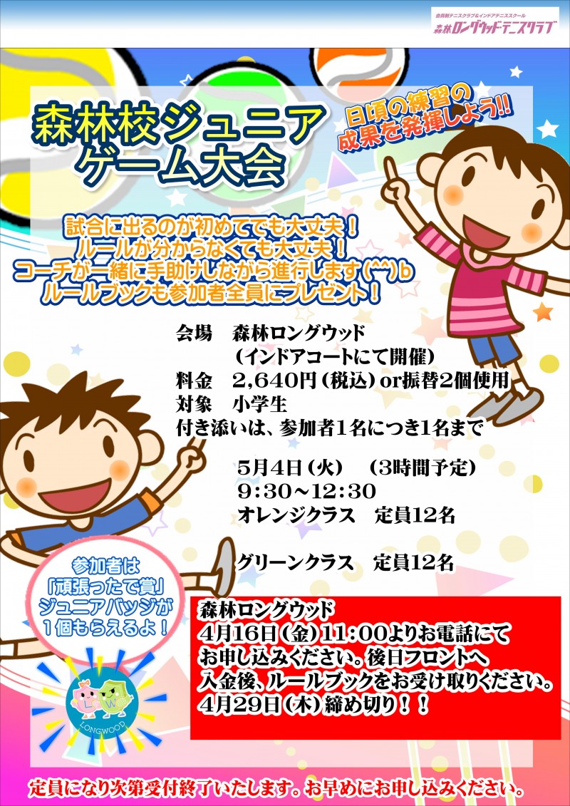 森林ロングウッドジュニアクラスからのお知らせです。