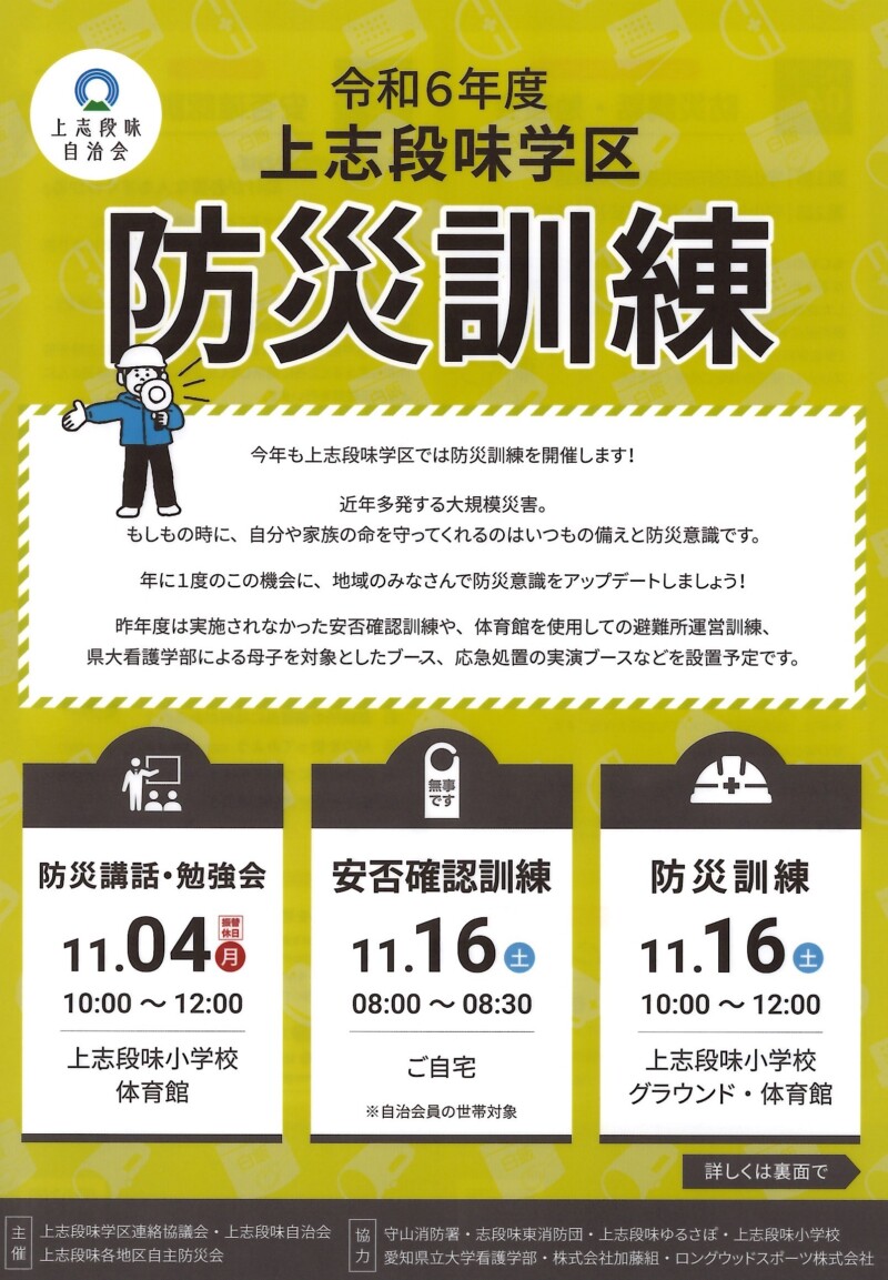 令和6年度「上志段味学区・防災訓練」が開催されます。