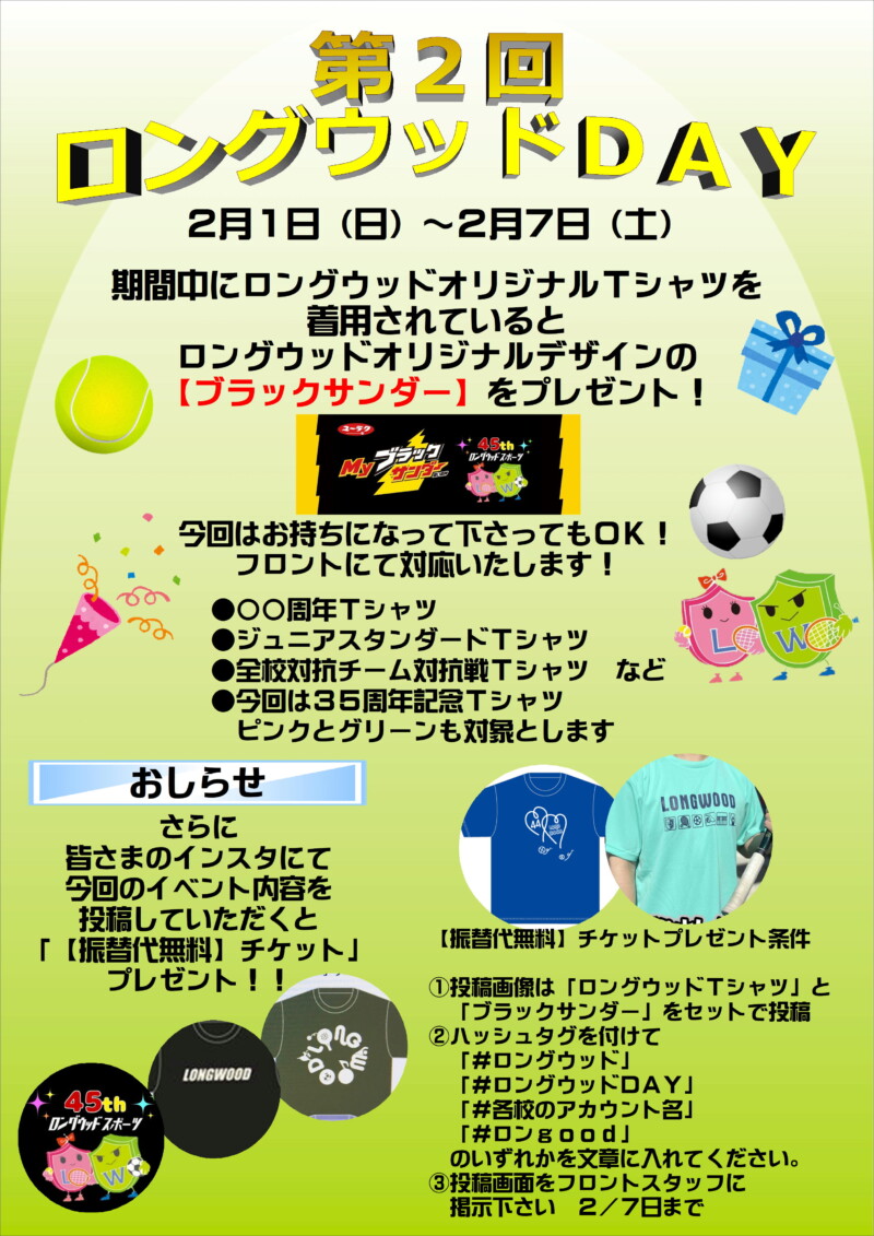 森林ロングウッドでは、2月1日(日)~7日(土)まで『ロングウッドDAY』を開催します!