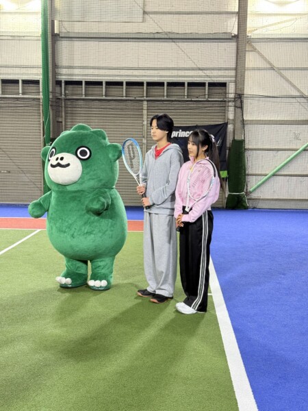 ちびゴジラと、おはキッズのここなちゃんとあくんが来場して、テニスを習います!