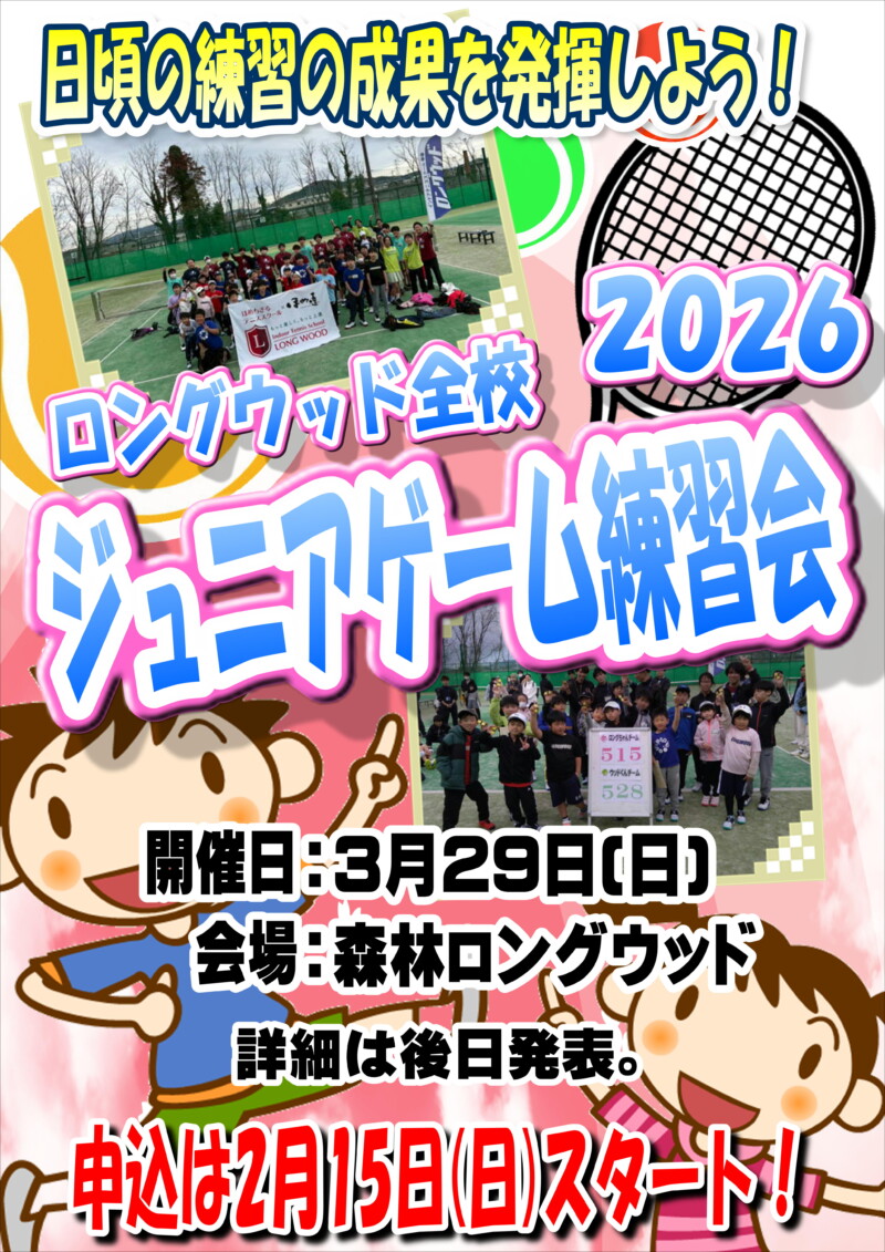 3月29日(日)に『全校ジュニアゲーム練習会』を開催します!