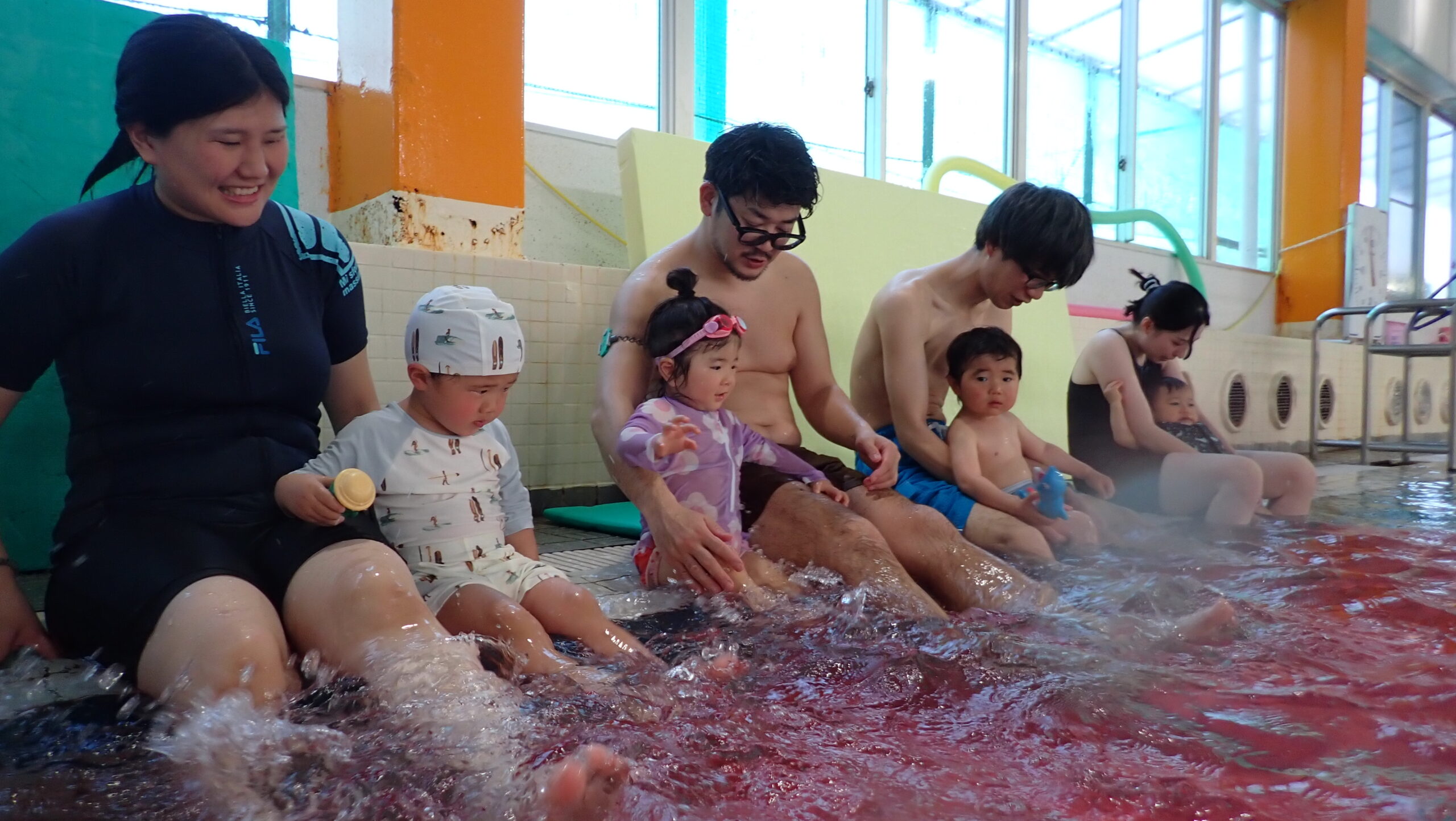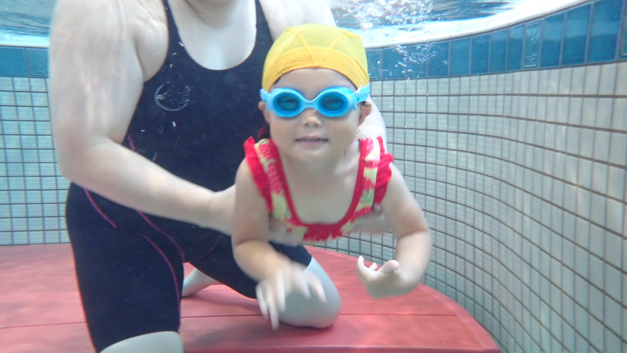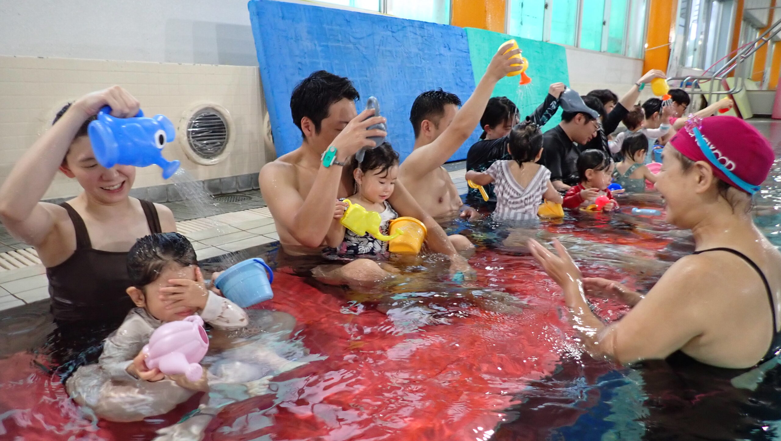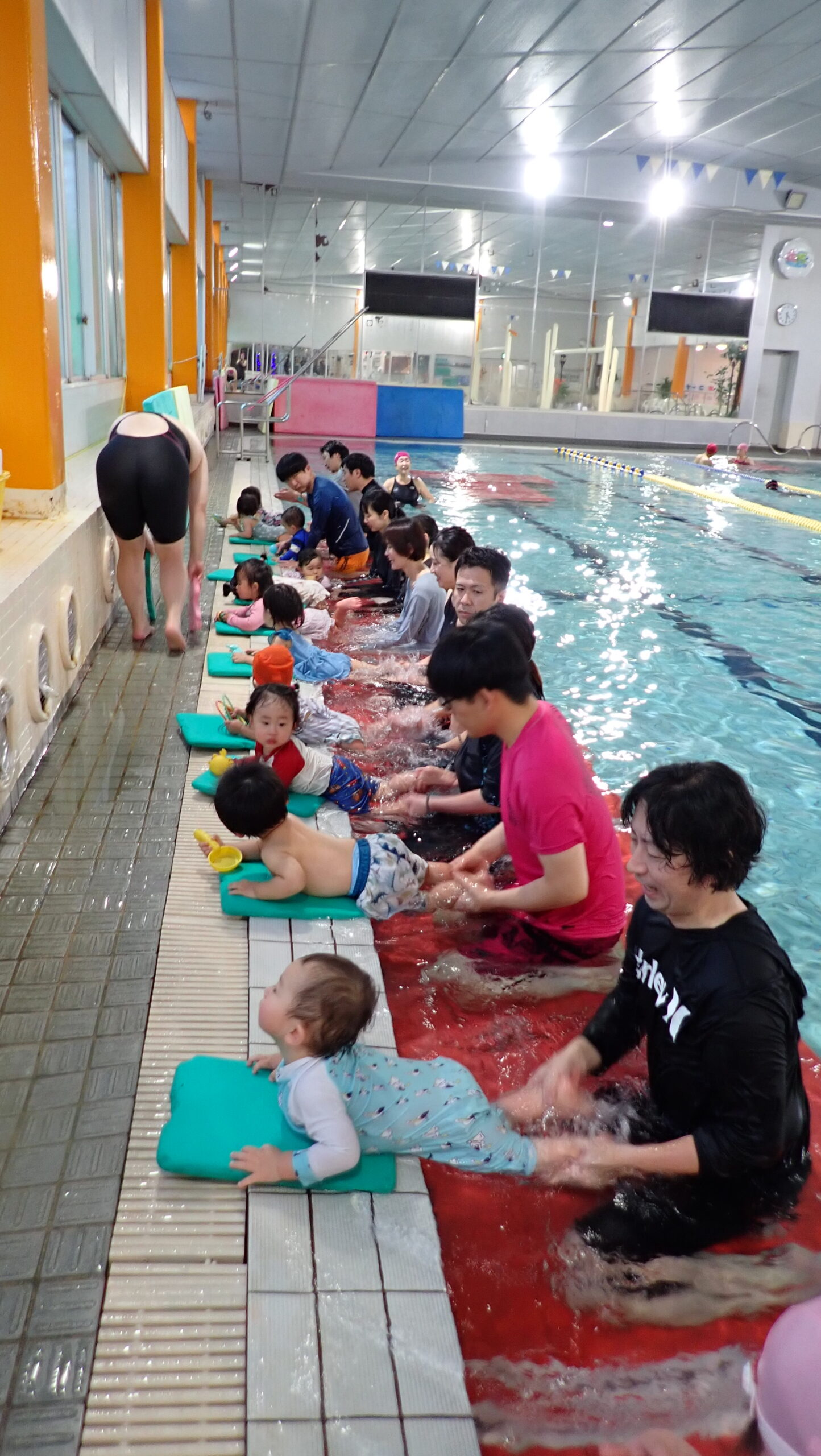 水慣れを目標に、ごあいさつ、お返事、順番を待つなど、お友だちと遊びながら集団行動を学びます。