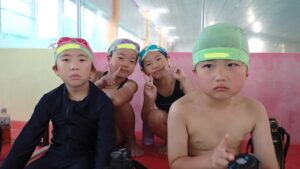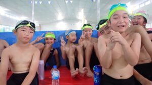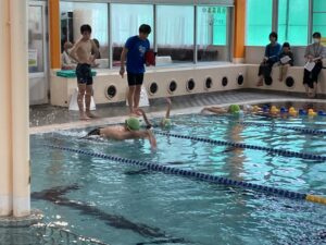 競技は25m‟板バタ足”、‟クロール”、‟背泳ぎ”、‟平泳ぎ”、‟バタフライ”の順番で進んでいき・・・