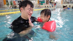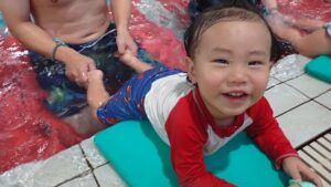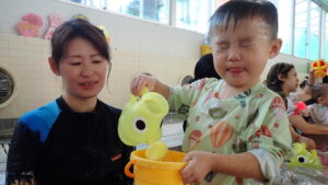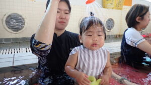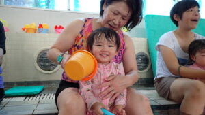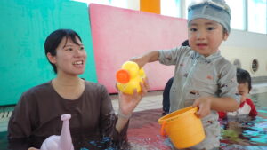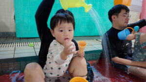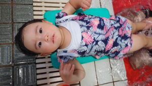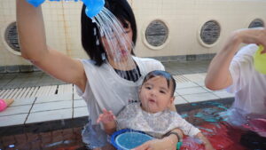『あーん、ぱっ!』の息こらえをして、お顔にお水をかけることができました!(^^)!