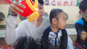 バケツとジョウロで遊びながらお水と触れ合うことができました💦