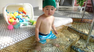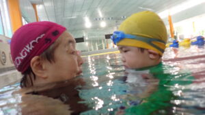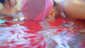 『あーん、ぱっ!』の息こらえでお水の中を覗くことができました(*’ω’*)