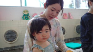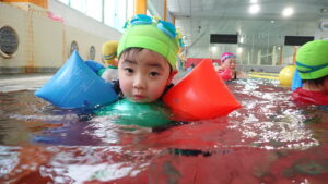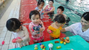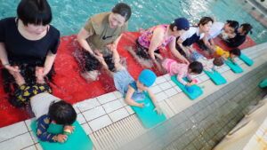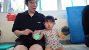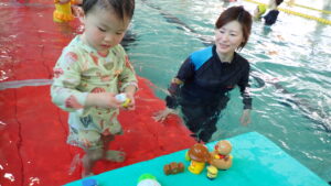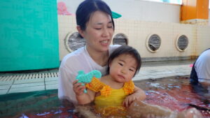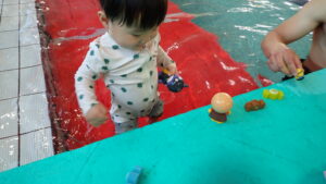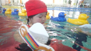 泳ぐ姿勢やあ水中歩行で形を変えてお片付けができました。