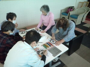 初の試みでしたが、塗り絵の時点で「お菓子、何が出るか楽しみ~」とお茶うけの話で盛り上がっていました。