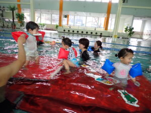 足を動かして泳ぐことができましたね。