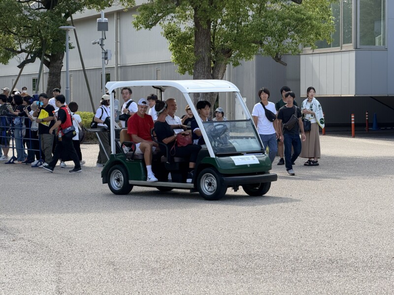 選手の乗ったカートが通っていきました。