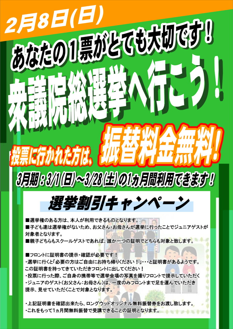 ロングウッドでは地域貢献の一環として、より多くの方に選挙に関心を持っていただきたく、『選挙割引キャンペーン』を実施します!