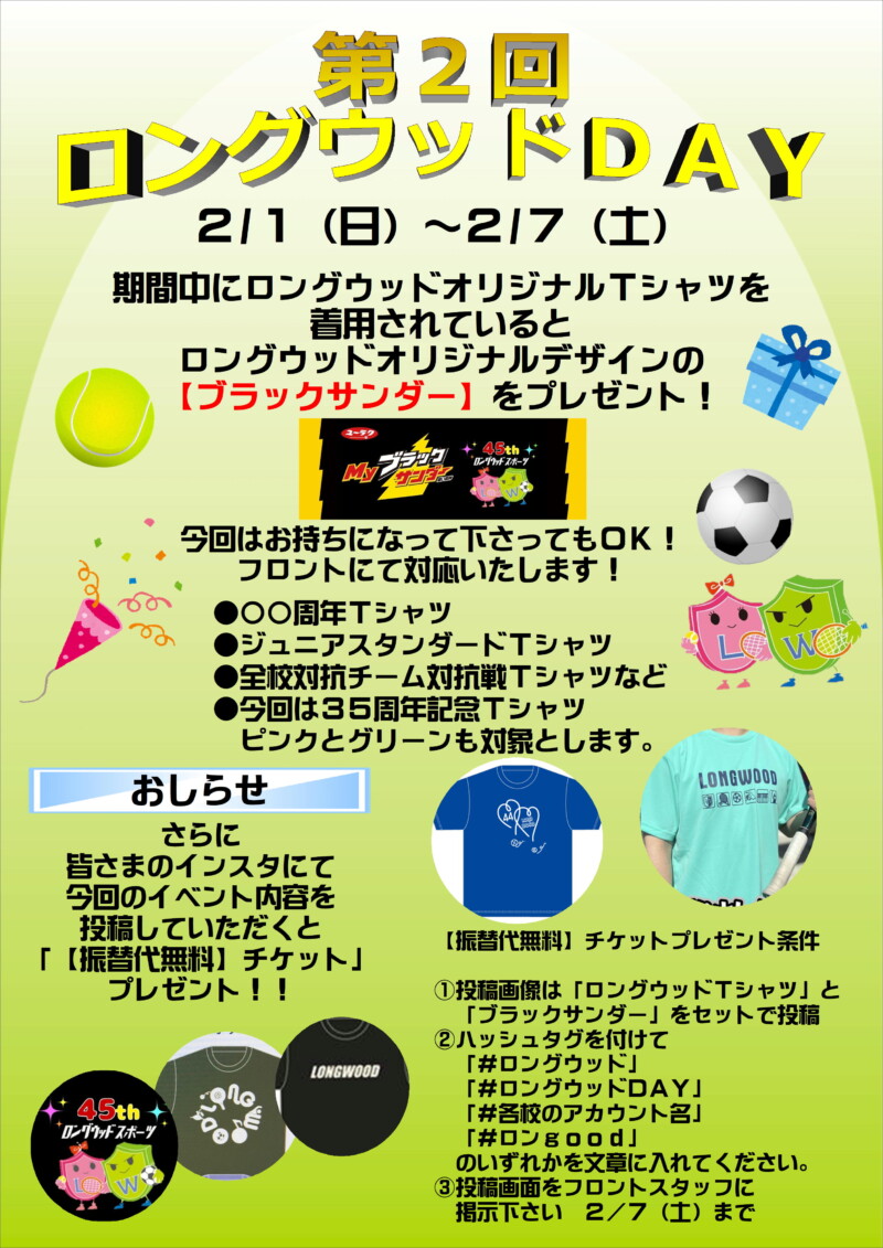 ロングウッド多治見では、2月1日(日)~7日(土)まで『ロングウッドDAY』を開催します!